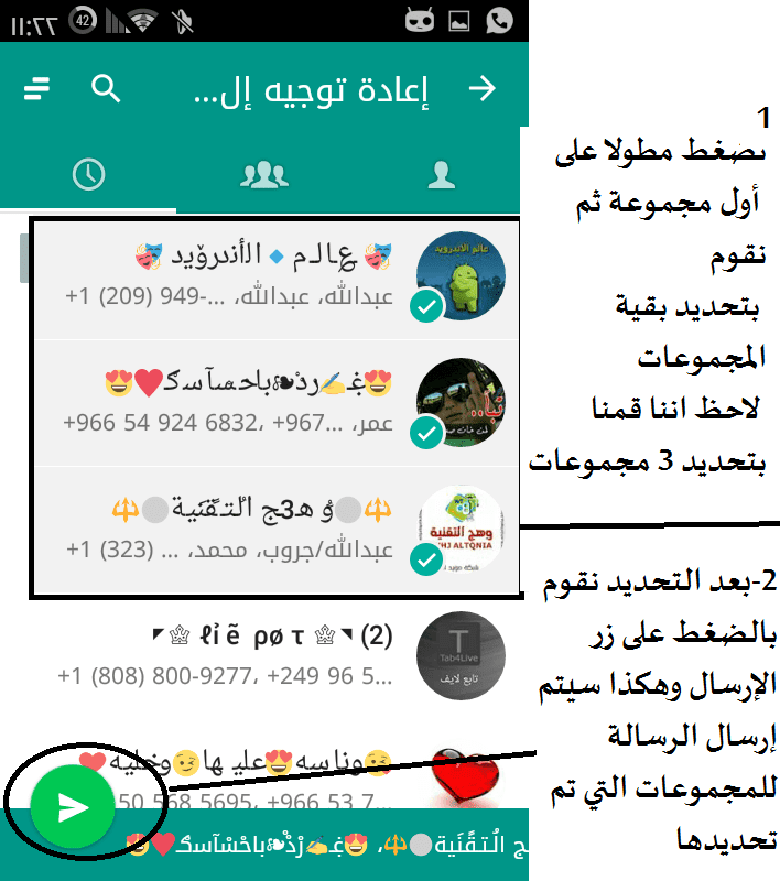 شرح طريقة إرسال رسائل جماعية لقروبات الواتس اب Whatsapp مدونة مطيع الجابري
