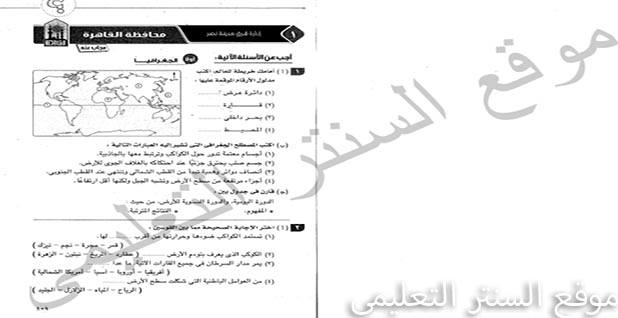 اسئلة واجابات الجغرافيا الصف الثانى الاعدادى الترم الاول 2017