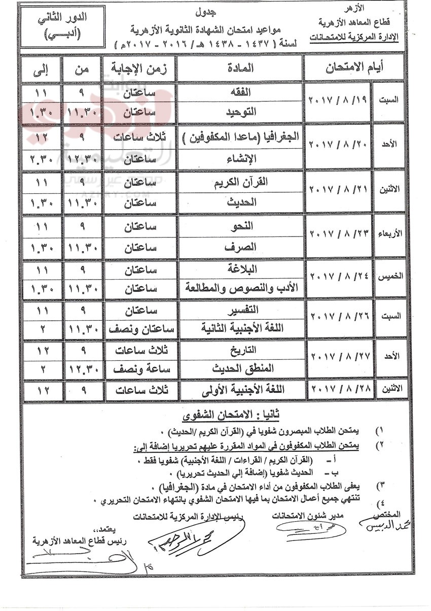 جداول امتحانات الازهر الشريف 2015 الدور الثانى.