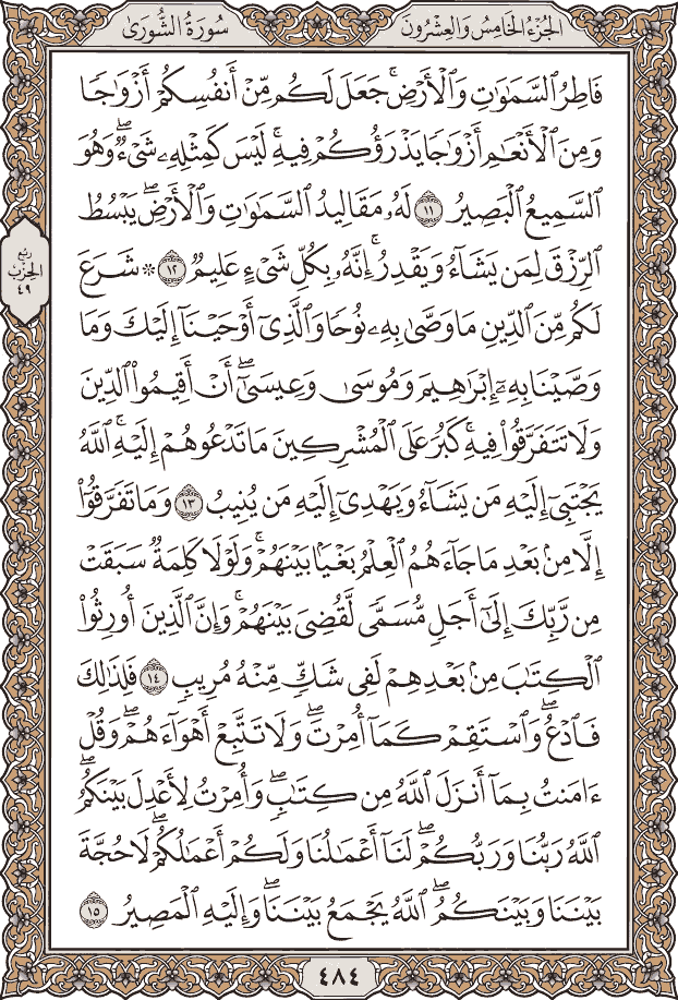 سورة فصلت 41 ص 482. الجزء الرابع والعشرون 24 من القران الكريم مكتوب بخط كبير.