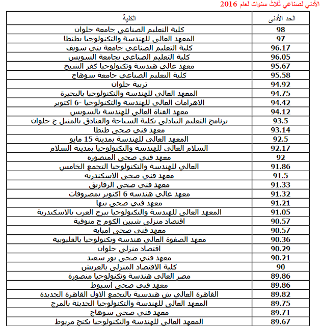 الحد الادنى للقبول بالجامعات 2016