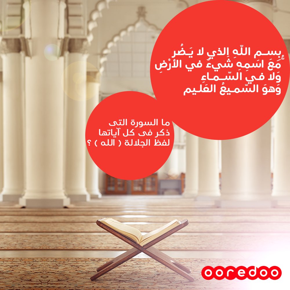 Ooredoo Kuwait على تويتر ما السورة التى ذكر فى كل آياتها لفظ الجلالة الله يوم الجمعة