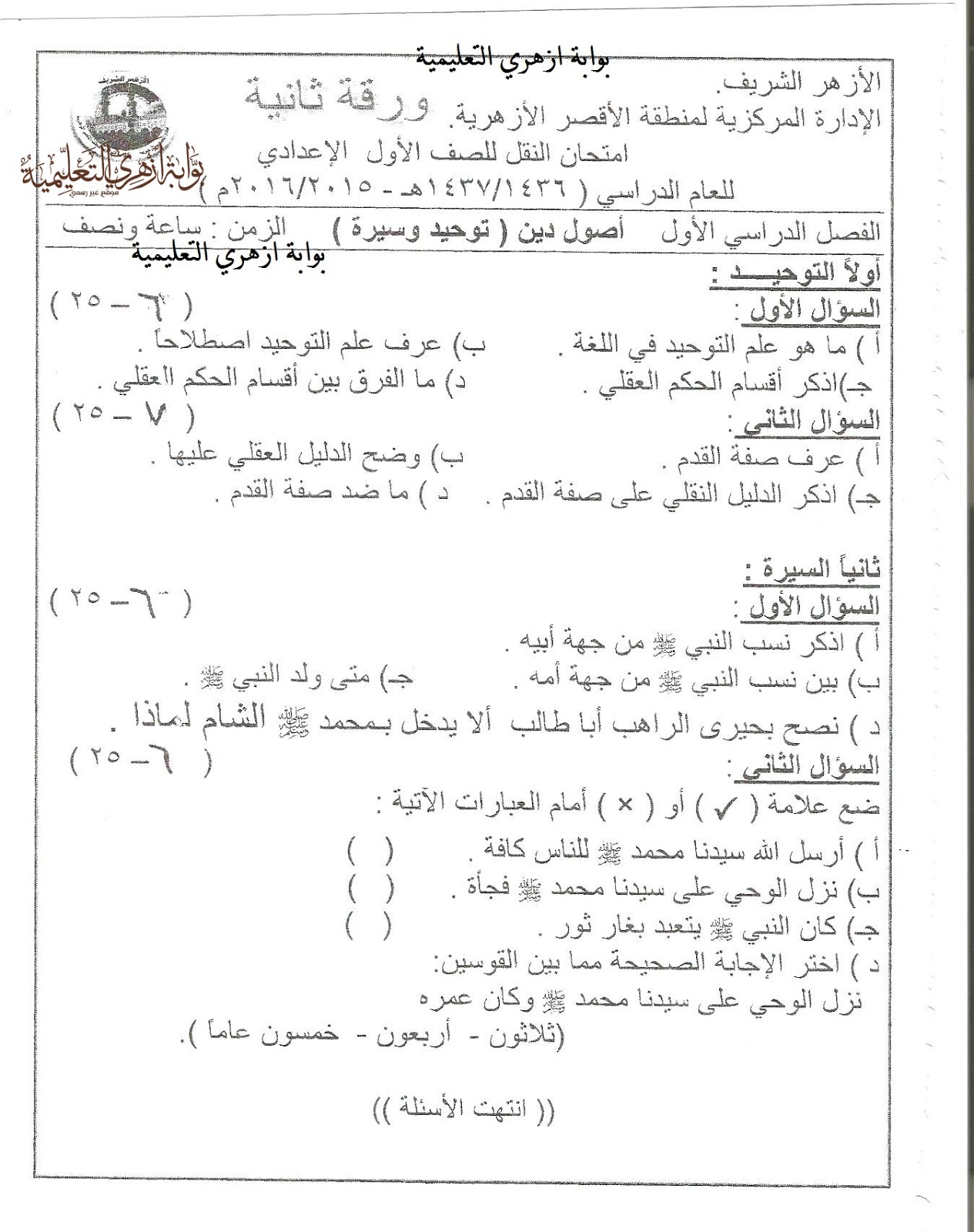 نماذج امتحانات اول اعدادي ترم اول لعام 2016