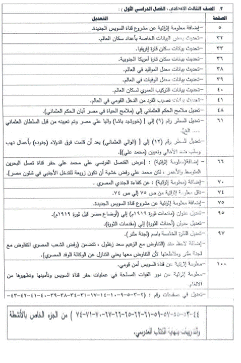 المحذوف والملغي في منهج الدراسات الاجتماعية للصف الثالث الإعدادي الترم الثاني 2014