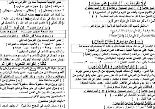 نماذج امتحانات اللغة العربية الصف السادس الابتدائي طالب
