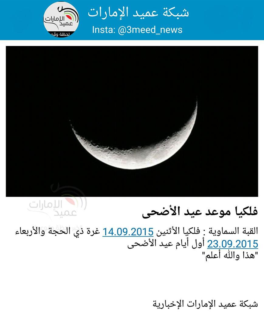 شبكة عميد الإمارات On Twitter القبة السماوية فلكيا الأثنين 14 09 2015 غرة ذي الحجة والأربعاء 23 09 2015 أول أيام عيد الأضحى هذا والله أعلم Http T Co Omjbxq6txl