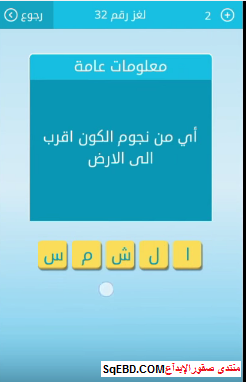 جواب سؤال اى من نجوم الكون اقرب الى الارض من لعبة رشفة لغز رقم 32 للمجموعة الرابعة صقور الإبدآع