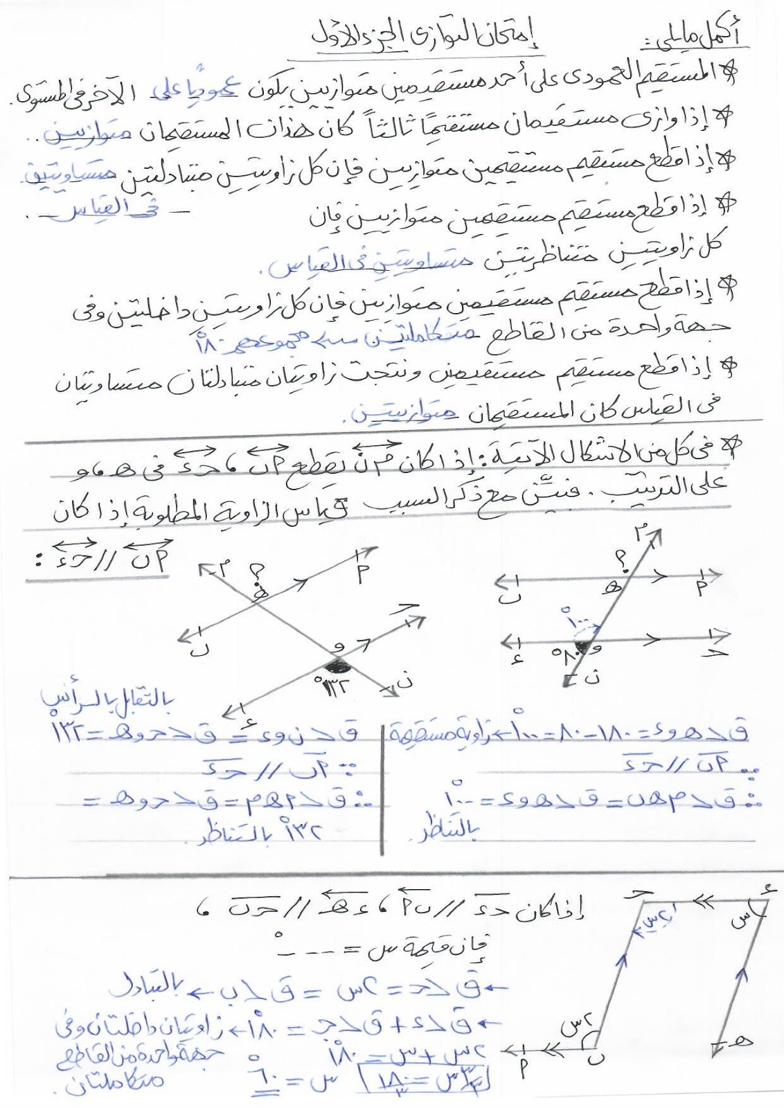 التوازي الجزء الاول هندسة اولي اعدادي مدونة ميس سلوى حامد