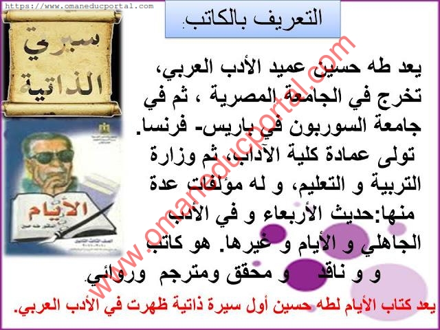 شرح درس عهد الطفولة في اللغة العربية للصف الثاني عشر الفصل الثاني