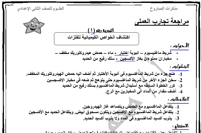 مراجعة امتحان عملى علوم للصف الاول الاعدادى ترم ثانى 2018 كل تجارب امتحان عملى العلوم First Grade Science Grade