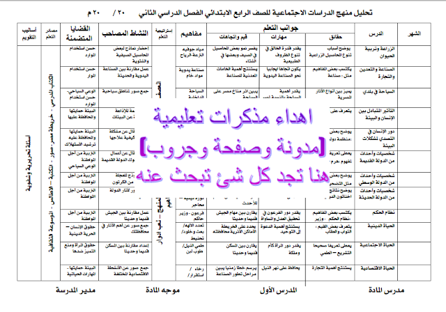 تحليل منهج الدراسات الاجتماعية للصف الثانى الاعدادى