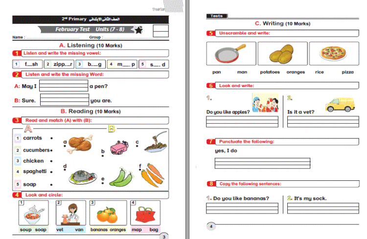 امتحانات اللغة الإنجليزية للصف الثانى الابتدائى ترم اول 2018