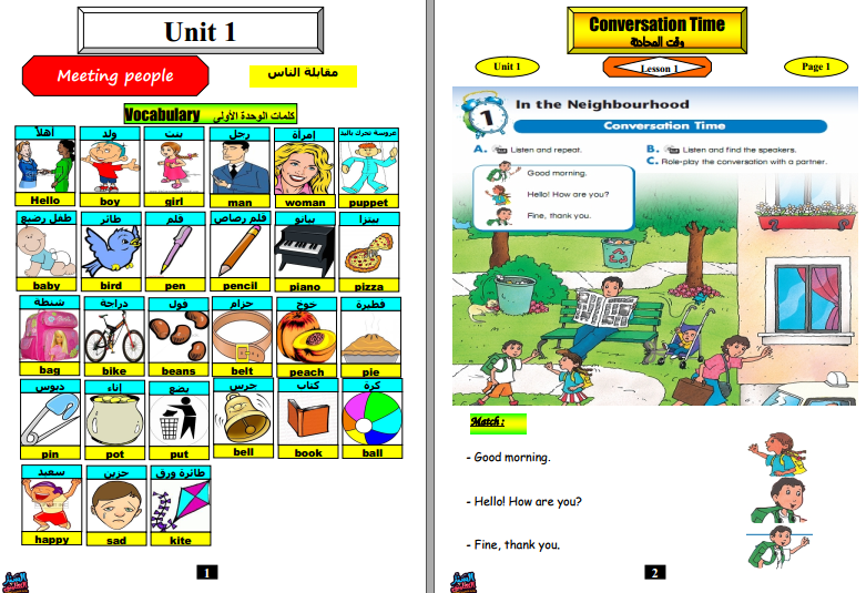 تعلم اللغة الإنجليزية للصف الثاني الإبتدائي الترم الأول الوحدة الأولي Meeting People الدرس الأول Youtube