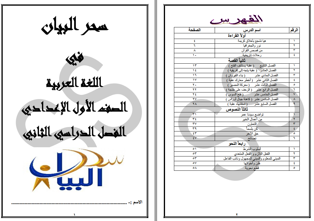 مذكرة اللغة العربية للصف الاول الاعدادى ترم ثانى من مذكرات سحر البيان للعربى
