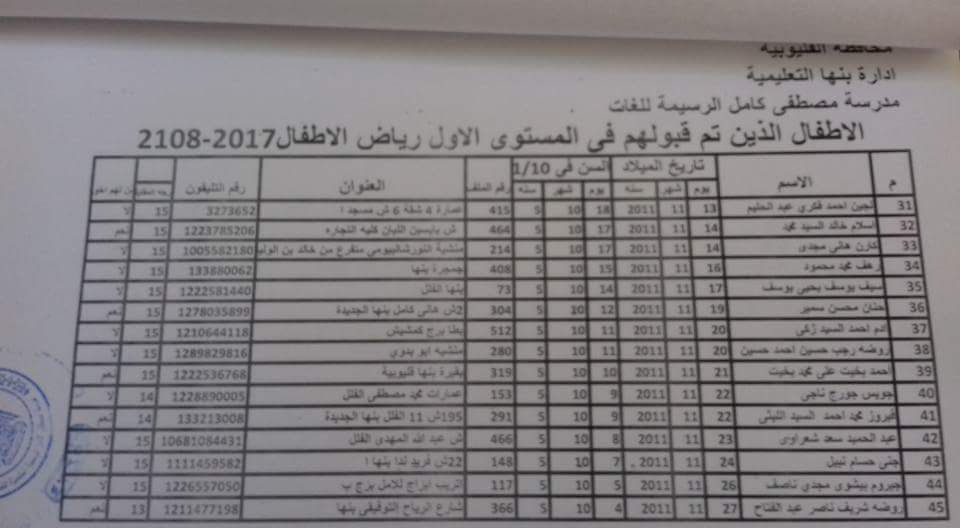 نتيجة تنسيق رياض اطفال محافظة الجيزة 2016 المقبولين فى المدارس الرسمية للغات بالرقم القومي