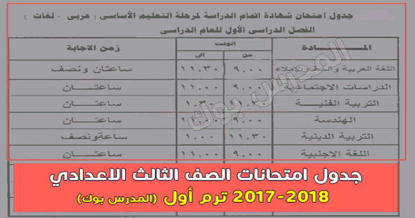 جدول امتحان الصف الثالث الاعدادى 2018