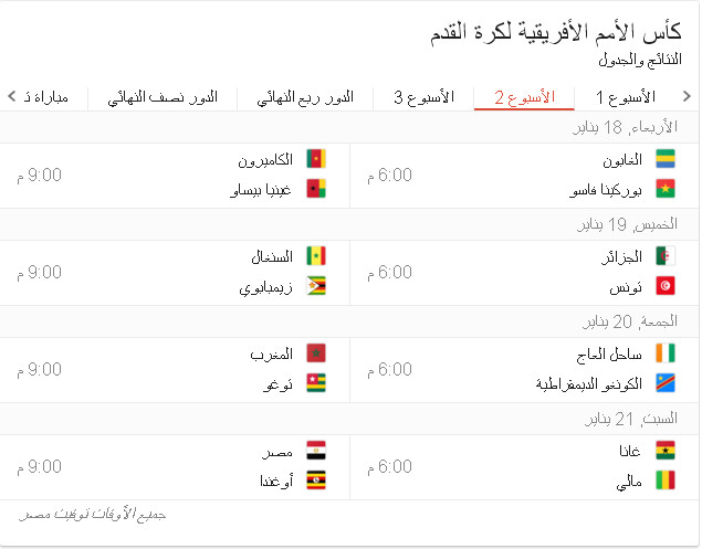 جدول مواعيد مباريات كاس الامم الافريقية شبكة أطلس سبورت