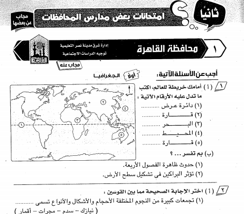 امتحانات دراسات اجتماعية للصف الاول الاعدادى ترم اول للمراجعة لبعض محافظات مصر