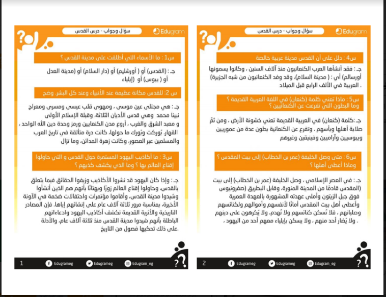 درس القدس مدينة عربية سؤال و جواب