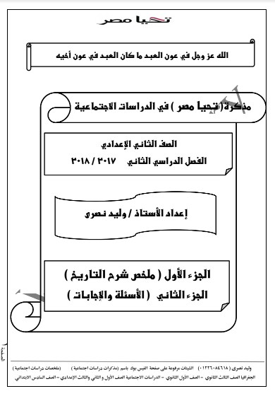 حمل مذكرات الدراسات الاجتماعية للصف الثانى الاعدادى الترم الثانى مذكرات تحيا مصر لمستر وليد نصري