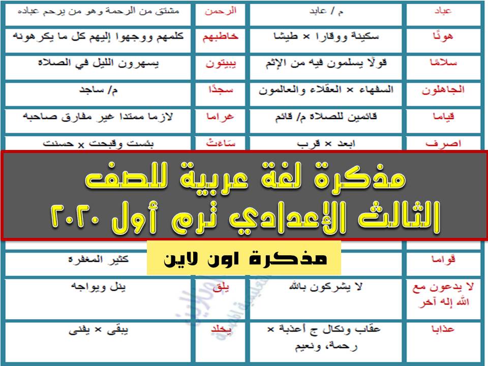 مذكرة لغة عربية للصف الثالث الاعدادى الترم الاول الامتحان التعليمى