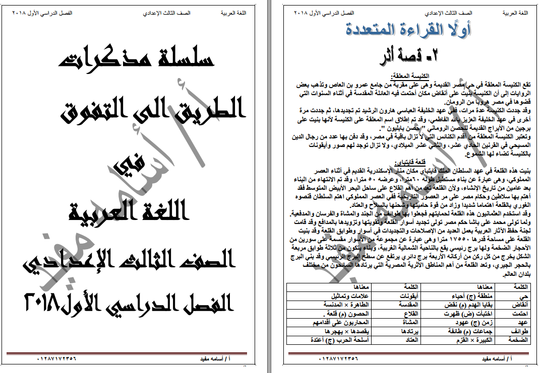 مذكرة اللغة العربية للثالث الاعدادى ترم اول 2019 للاستاذ اسامة مفيد