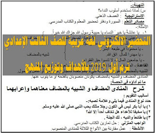 دفتر تحضير اللغة العربية للصف الثالث الاعدادى الترم الاول 2019 بالأهداف وتوزيع المنهج والتحضير