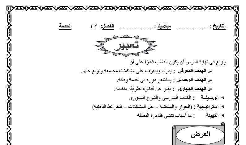 دفتر تحضير الدروس لغة عربية مذكرة مصر