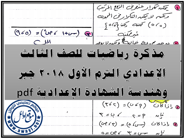 مذكرة رياضيات للصف الثالث الإعدادي الترم الأول 2018 جبر وهندسة الشهادة الإعدادية Pdf