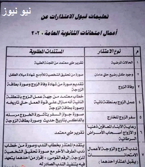الاعتذار عن المشاركة في امتحانات الثانوية العامة مديرية التربية والتعليم بالقليوبية