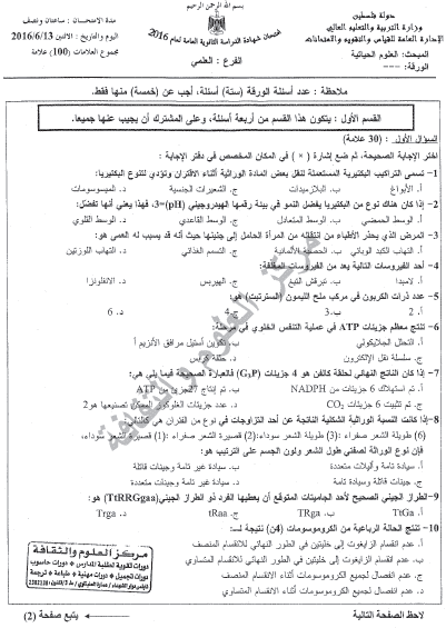 امتحان التربية الوطنية الثانوية العامة 2016 ثالث ثانوي