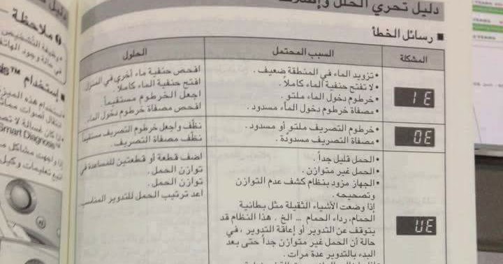 رموز اعطال الغسالة الاتوماتيك والفوق اتوماتيك