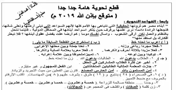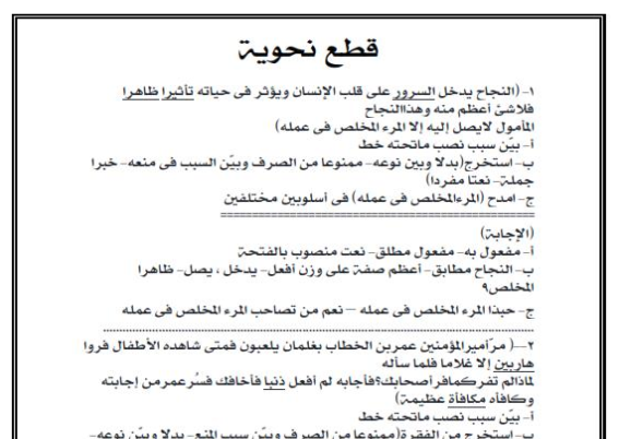 اقوى قطع نحوية مجابة للثالث الاعدادى لن يخرج عنها اى امتحان عربى