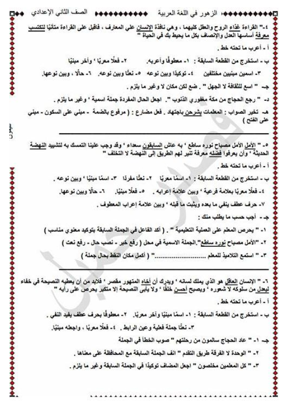 قطع نحو محلولة للثانى الإعدادى لن يخرج عنها امتحان نصف العام