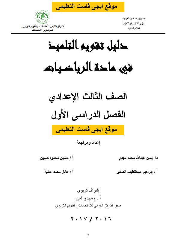 دليل تقويم الطالب فى الرياضيات للصف الثالث الاعدادى الترم الاول 2017