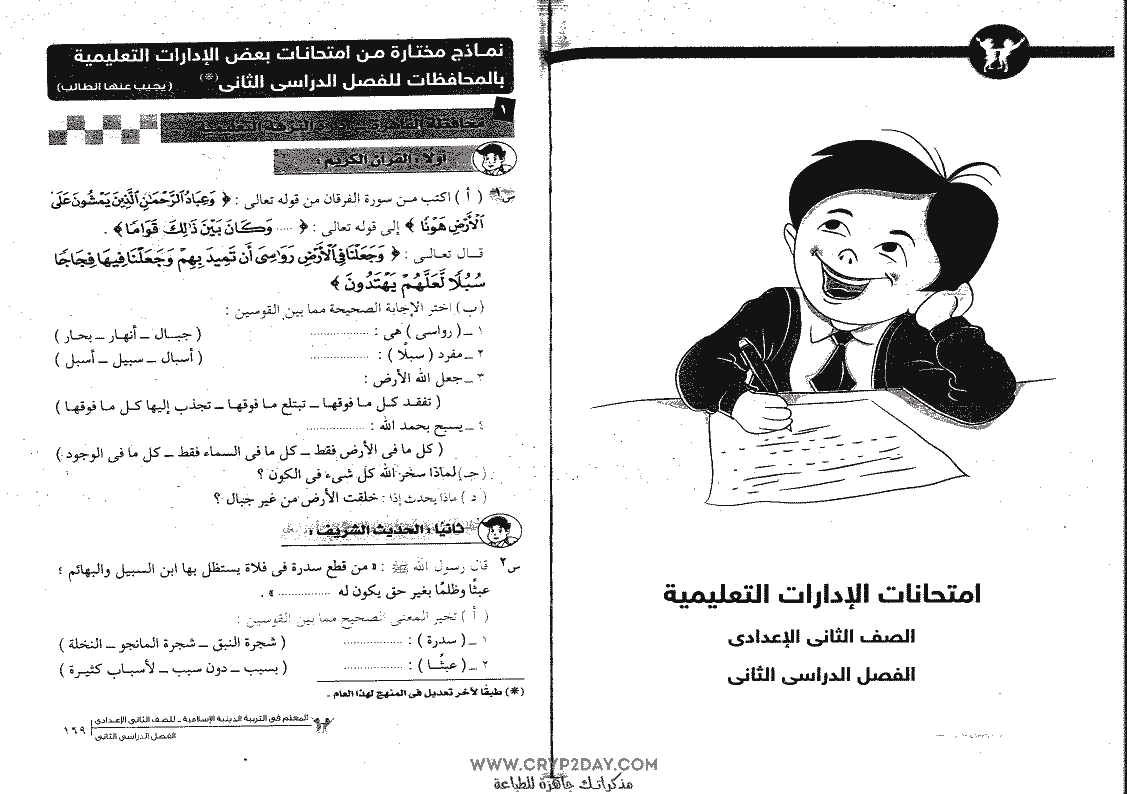 امتحانات كتاب المعلم فى الدين الاسلامى للصف الثانى الاعدادى الترم الثانى 2019