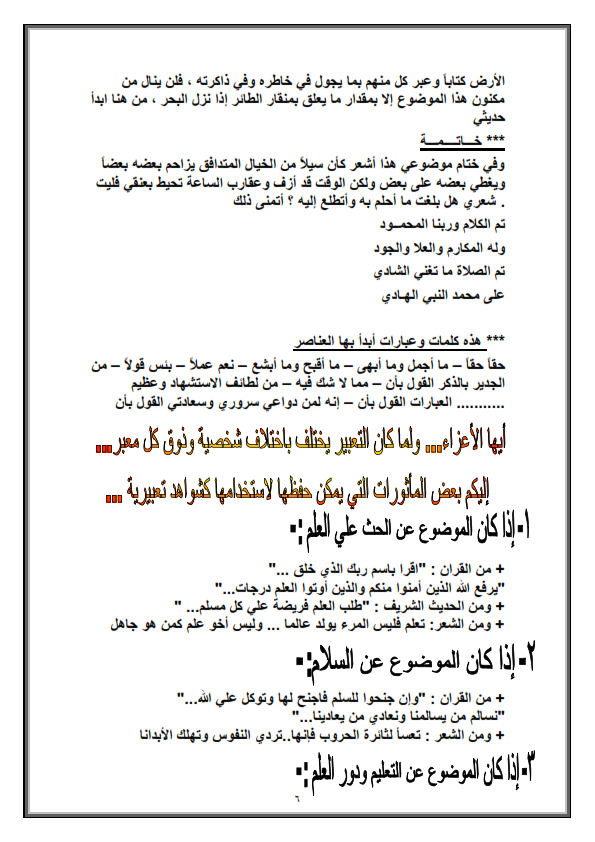خطوات كتابة موضوع تعبير في الامتحان ملزمتي