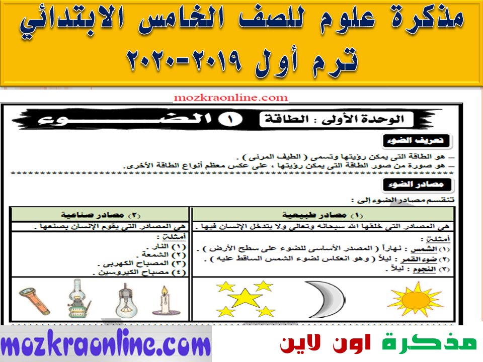 مذكرة علوم الصف الخامس الابتدائي الترم الأول 2020