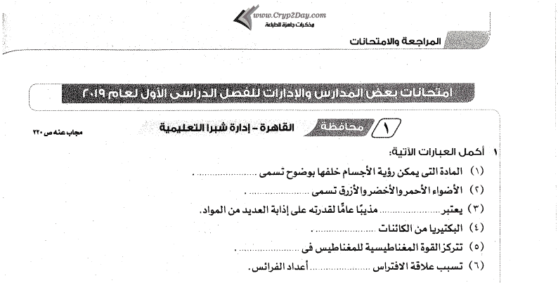 امتحان العلوم للصف الخامس الابتدائي ترم ثانى 2018 ادارة بنها التعليمية محافظة القليوبية تم امتحانة فعلا