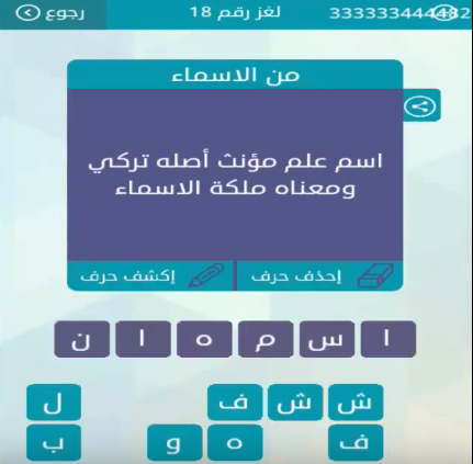 اجابة لغز اسم علم مؤنث اصله تركى ومعناه ملكة الاسماء لعبة الكلمات المتقاطعة Youtube