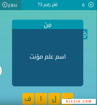 حل سؤال اسم علم مؤنث من اربع حروف فى لعبة متقاطعة لغز 73 صقور الإبدآع