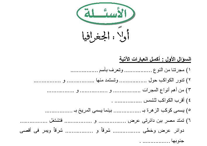 مراجعة نهائية فى الدراسات للصف الاول الاعدادى الترم الثانى 2019 الامتحان التعليمى
