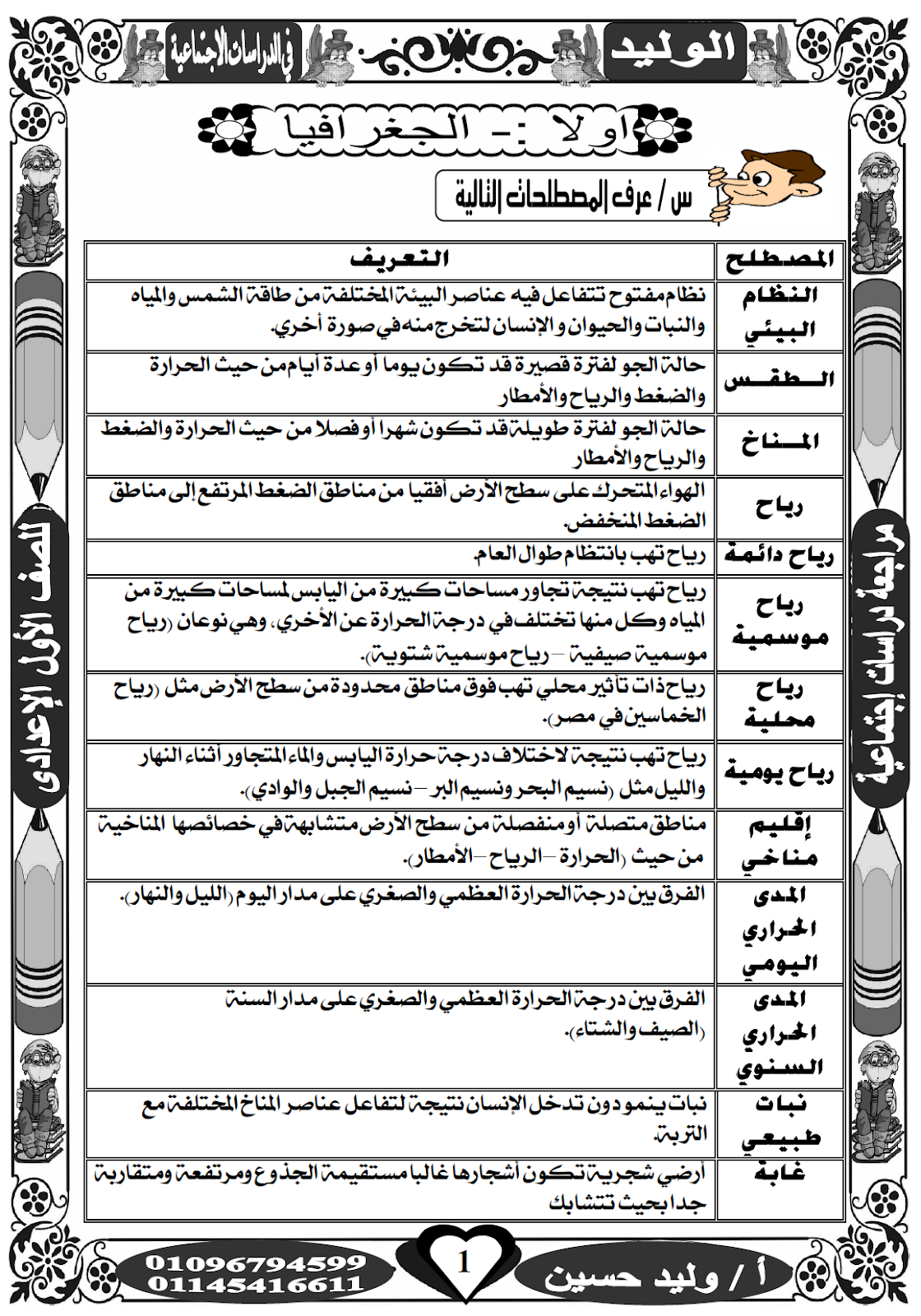 اقوى مراجعة دراسات إجتماعية للصف الاول الاعدادى الترم الاول 17 ورقة Pdf مستر وليد حسين