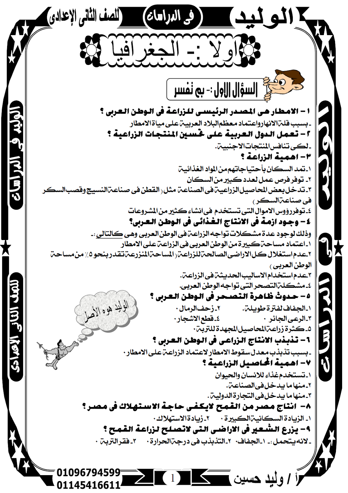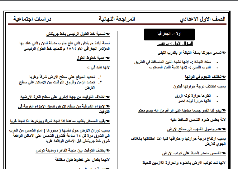 المراجعه النهائيه في الدراسات الاجتماعيه للصف الاول الاعدادي الترم الثاني