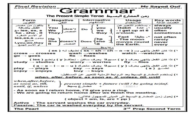 مذكرة قواعد اللغة الانجليزية للصف الثالث الاعدادي طالب