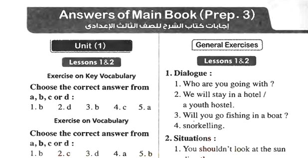 اجابات كتاب المعاصر للصف الثالث الاعدادى انجليزى ترم اول 2020 اجابات المعاصر Elmoasser
