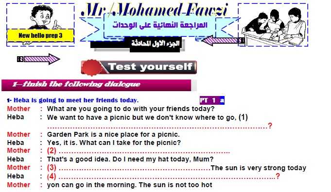 مذكرة لغة انجليزية للصف الثالث الاعدادى الترم الاول الامتحان التعليمى
