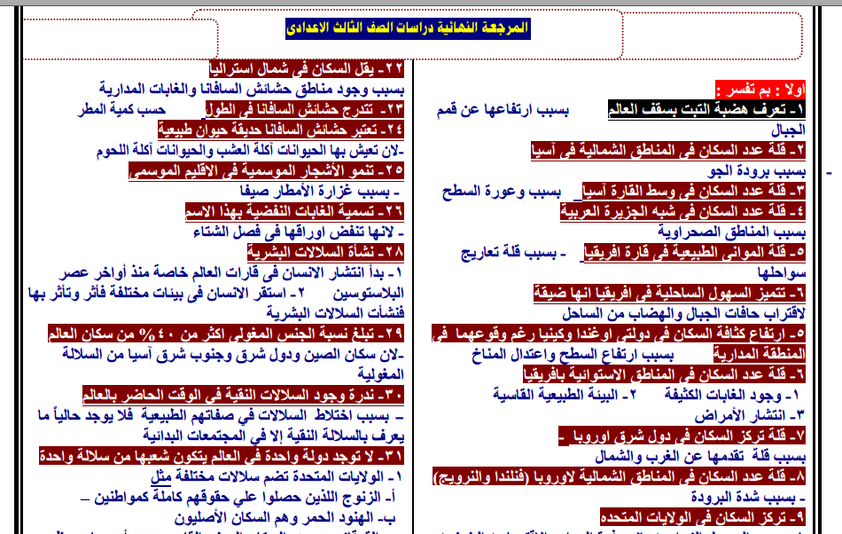 منهج دراسات اجتماعية للشهادة الاعدادية الصف الثالث الاعدادى افضل مذكرات الجغرافيا والتاريخ