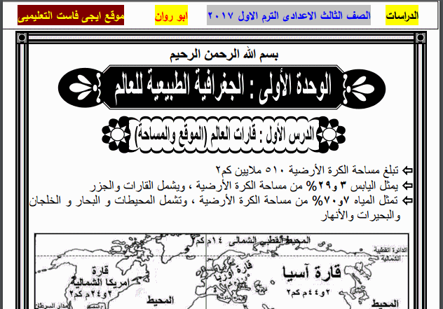منهج دراسات اجتماعية للشهادة الاعدادية الصف الثالث الاعدادى افضل مذكرات الجغرافيا والتاريخ