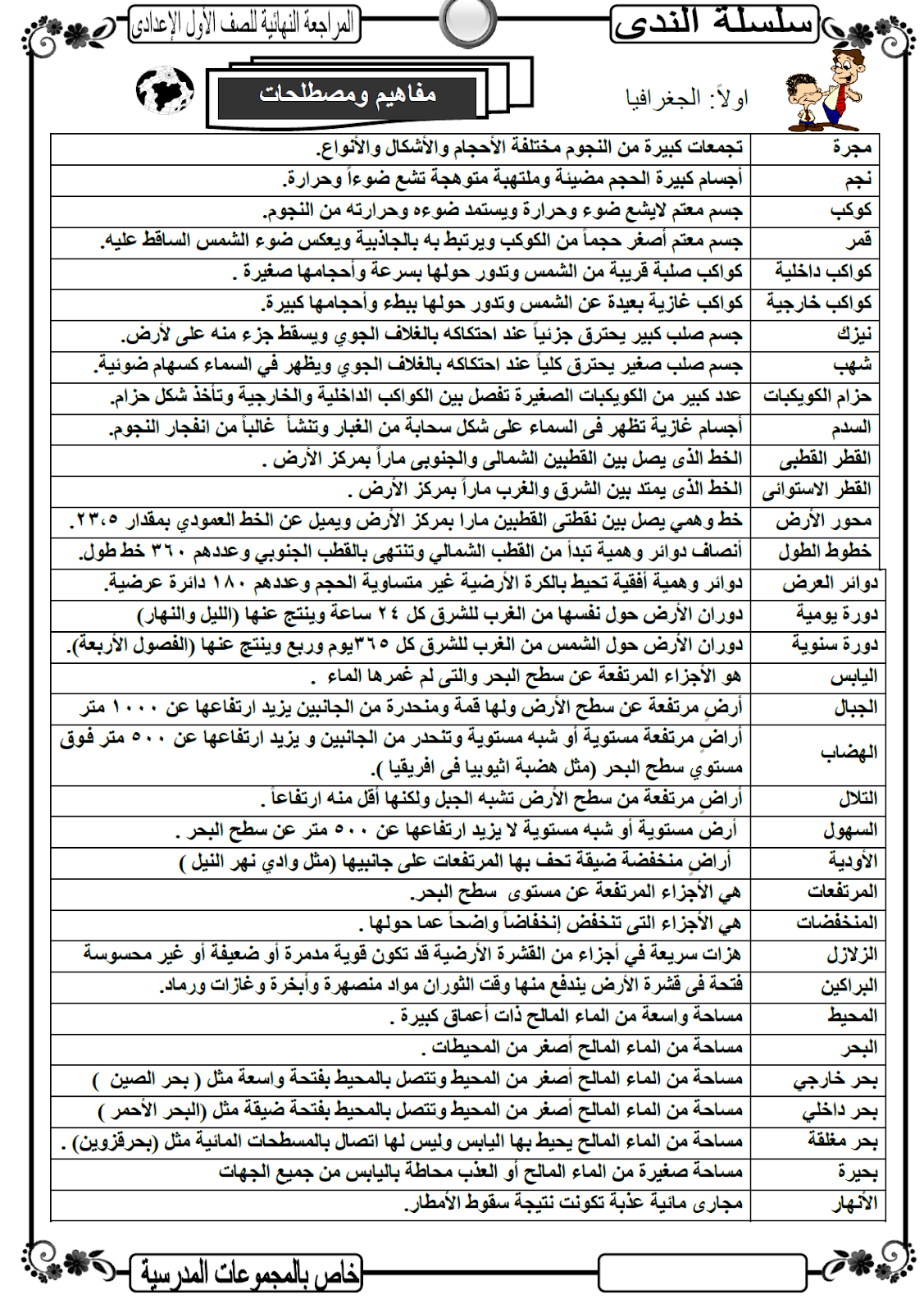 افضل مذكرة مراجعة نهائية مراجعة ليلة الامتحان فى الدراسات الاجتماعية الصف الثالث الاعدادى اعداد أ محمد
